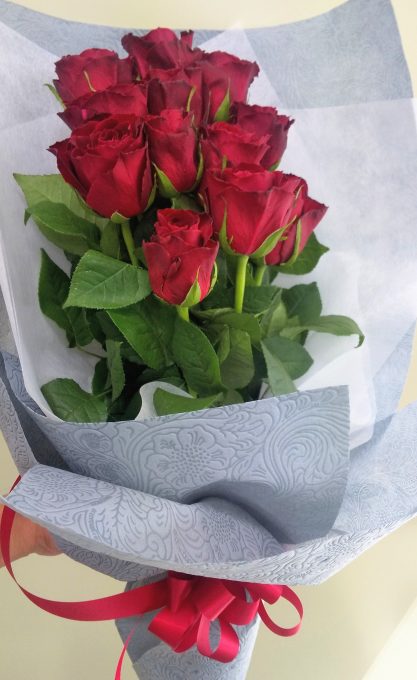 赤バラ12本のダズンローズの花束をおすすめしました