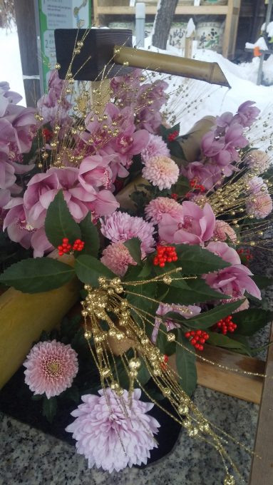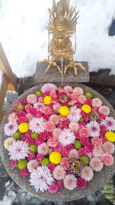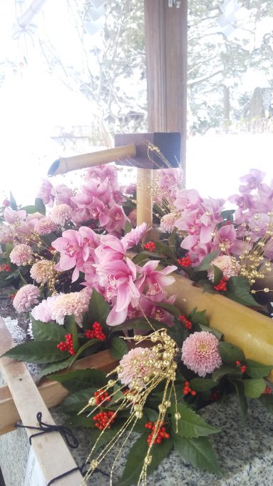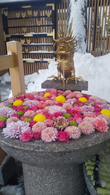 2021.01.11 成人の日より 手水舎を「花手水」にしてました