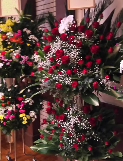 会場であまり見ることの無いスタンド花なので式場の方も「わ~~!」って