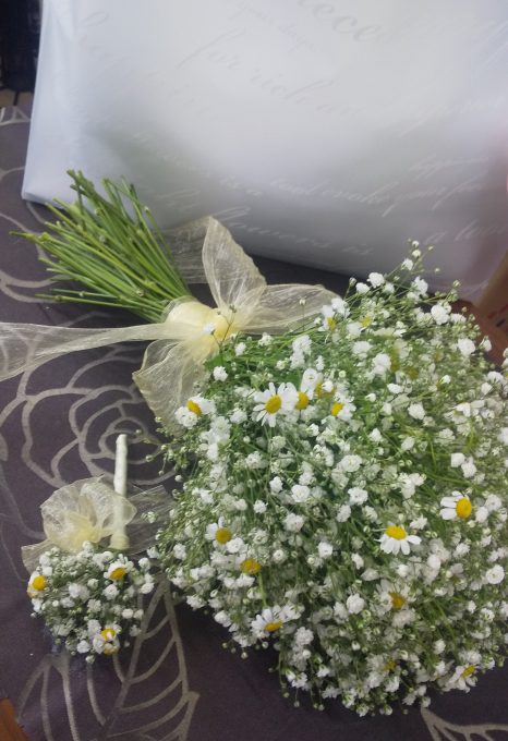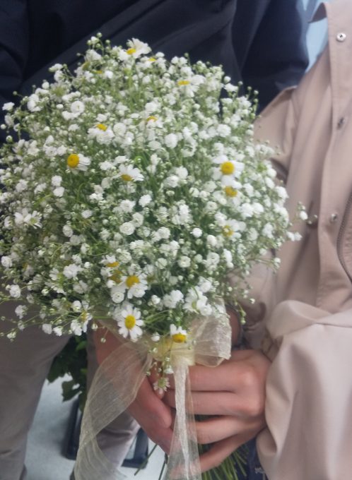 「かすみそう&マドリカリア」のブーケが